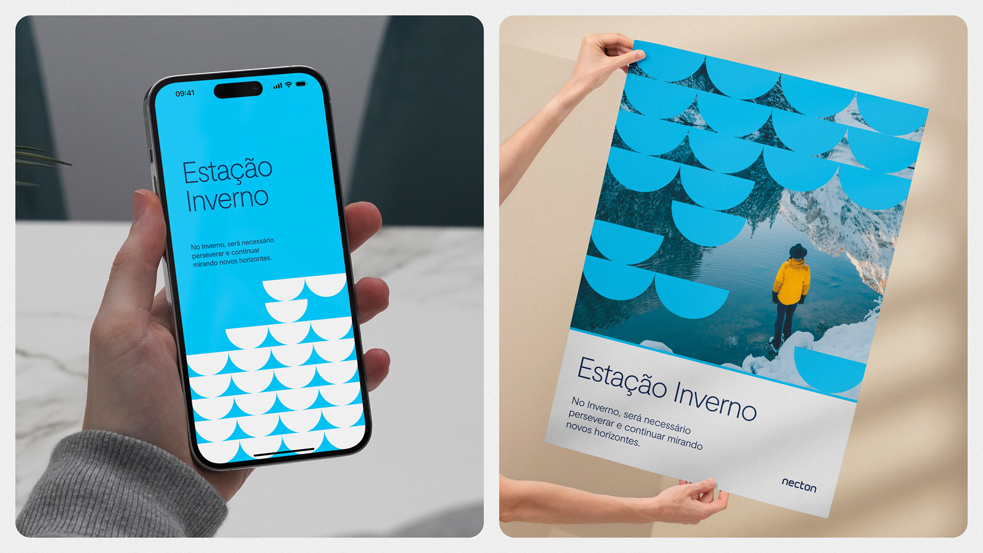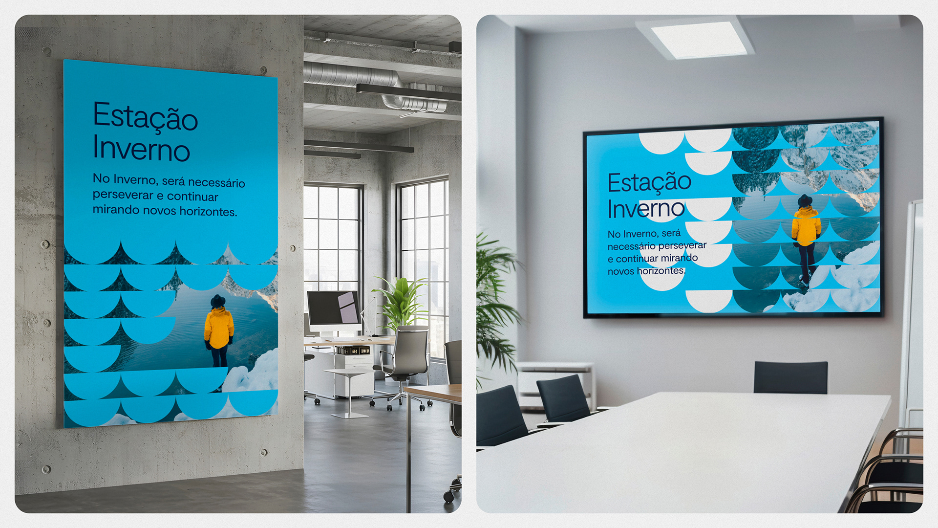 A seguir, a identidade visual que contempla a estação inverno e suas aplicações.