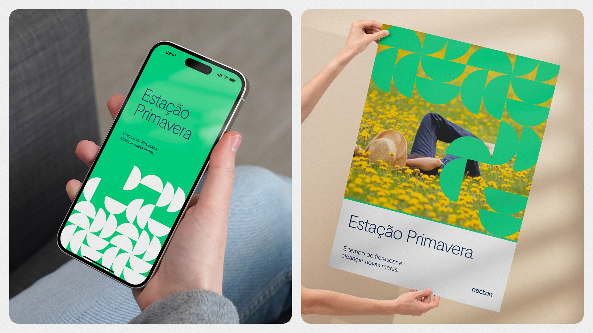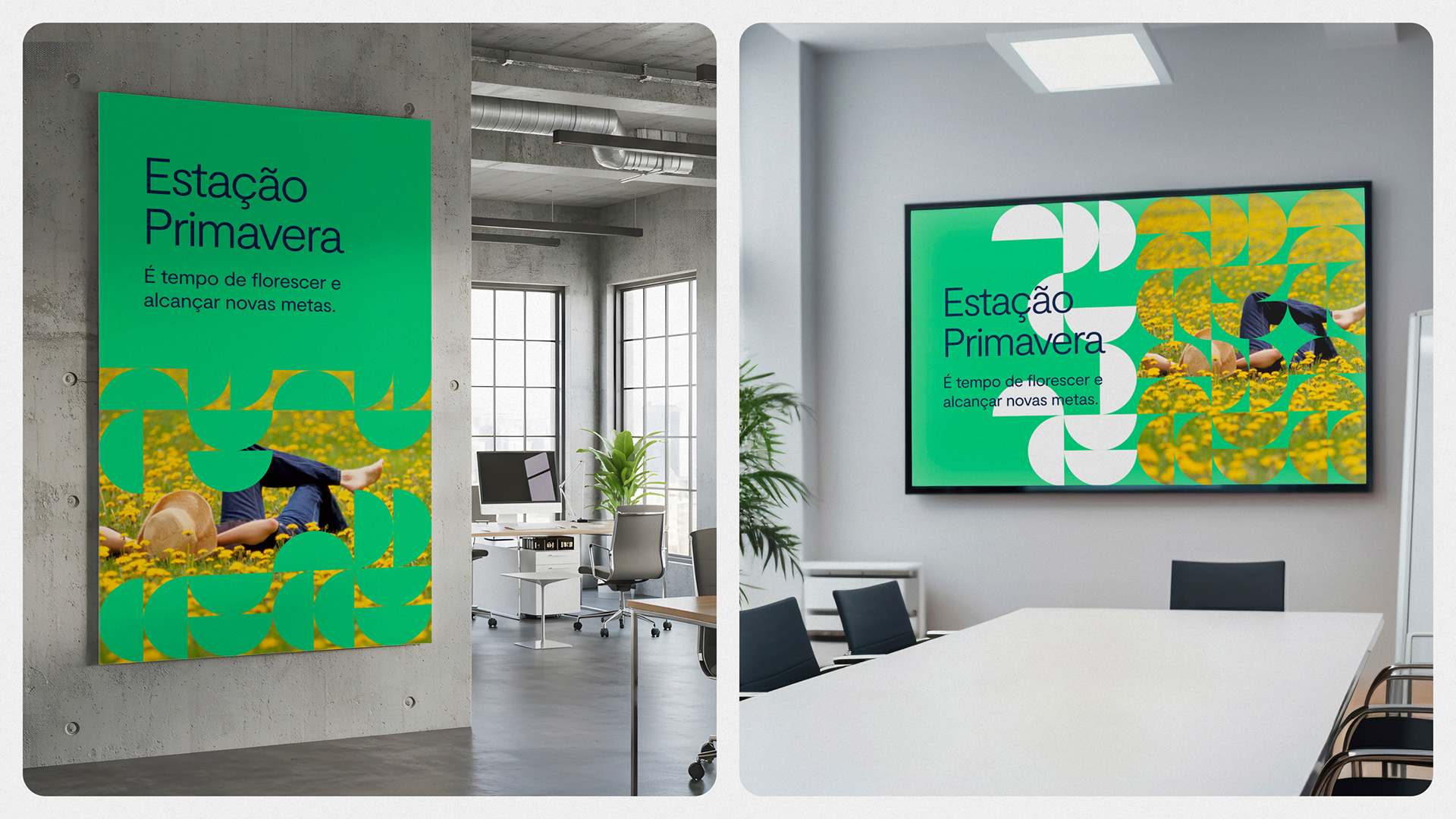 A seguir, a identidade visual que contempla a estação primavera e suas aplicações.