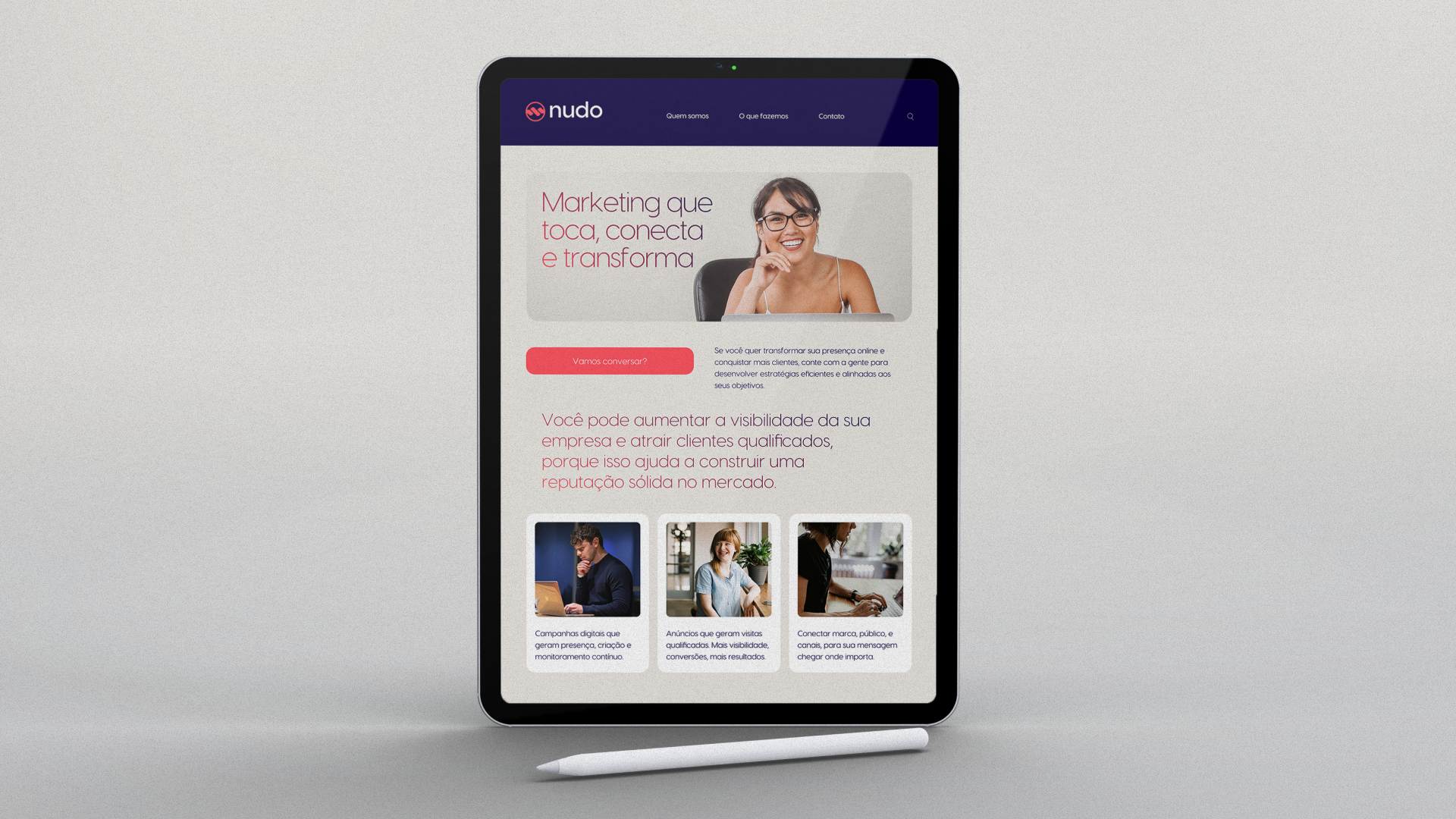 A Nudo é uma agência jovem de marketing que atende empresas em crescimento e pequenos negócios, tornando a presença digital mais acessível e desenvolvendo estratégias eficazes, sempre alinhadas aos objetivos de cada cliente.